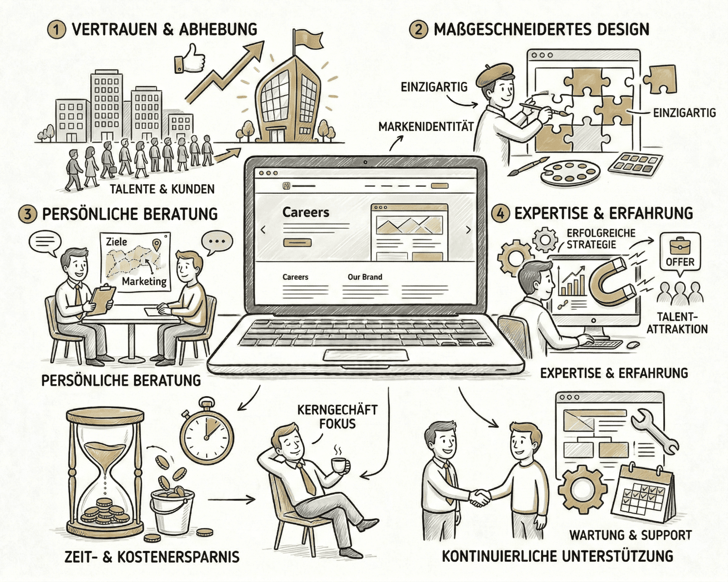 Ich erstelle moderne Webseiten, die Vertrauen bei potenziellen Neukunden schaffen. Gleichzeitig präsentiere ich Ihr Unternehmen als attraktiven Arbeitgeber in der Region und überzeuge potenzielle Mitarbeiter mit einer modernen Karriereseite von Ihrem Angebot.